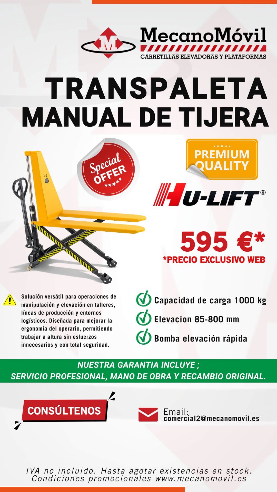 TRANSPALETA MANUAL DE TIJERA 1000 KG